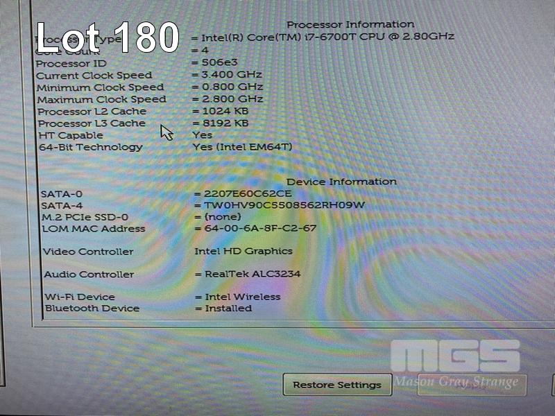 DESKTOP PC, DELL OPTIPLEX 7040 MICRO, CORE i7 6700T (6TH GEN) @ 2.8GHz, 64GB DDR4 RAM, 128GB M.2 SSD, 1TB SSD, INTEL HD VIDEO, 6 x USB, Wi-Fi, BLUETOOTH, WINDOWS 10 PRO INSTALLED & POWER SUPPLY (65W) (NO KEYBOARD, NO MOUSE) S/N:69G5YC2