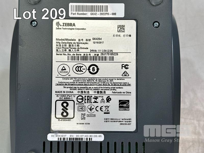 ZEBRA GK420d LABEL PRINTER WITH POWER SUPPLY S/N:8443237