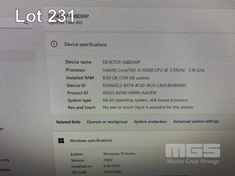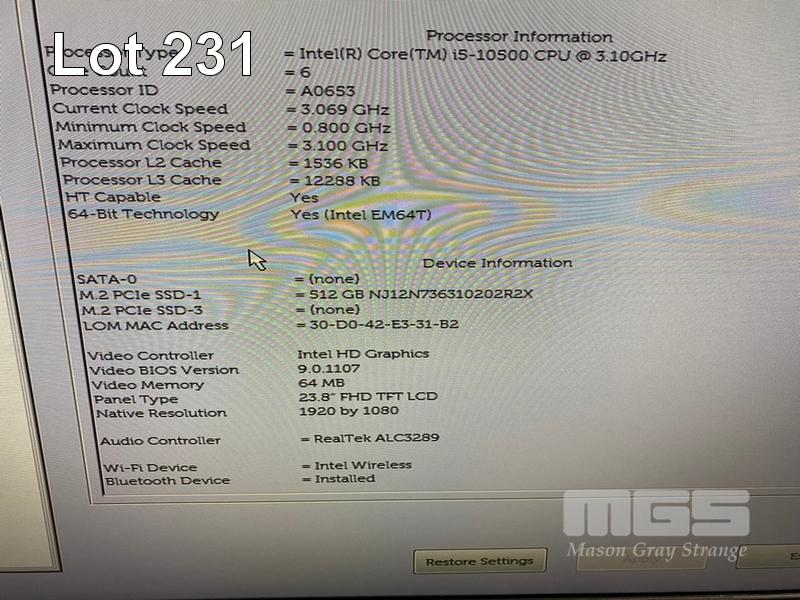 ALL-IN-ONE PC, DELL OPTIPLEX 7480, CORE i5 10500 (10TH GEN) @ 3.1GHz, 8GB DDR4 RAM, 512GB NVMe M.2 SSD, INBUILT 23.8" FHD WIDESCREEN (1920x1080), INTEL HD VIDEO, WEBCAM, 5 x USB, 1 x USB-C, Wi-Fi, BLUETOOTH, WINDOWS 11 HOME INSTALLED, KEYBOARD & MOUSE S/N:HVW54F3