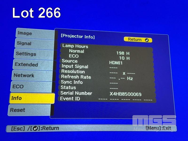 PROJECTOR, EPSON EB-U140 3LCD, 3,400 LUMENS, 198 NORMAL HOURS & 10 ECO HOURS SHOWING WITH REMOTE S/N:X4HB8500069