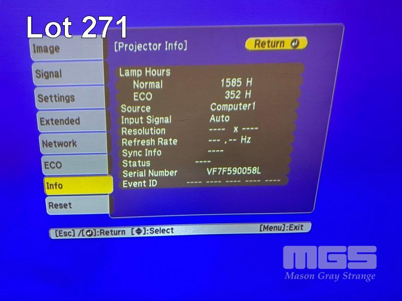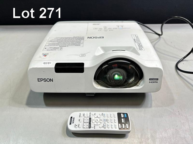 PROJECTOR, EPSON EB-535W SHORT THROW 3LCD, 3,400 LUMENS, 1,585 NORMAL HOURS & 352 ECO HOURS SHOWING WITH REMOTE S/N:VF7590058L