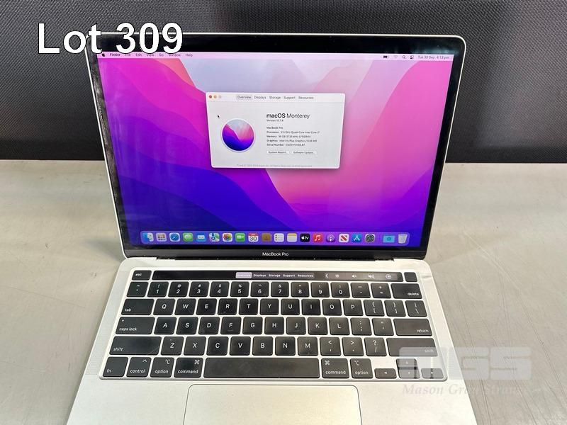 LAPTOP, APPLE MACBOOK PRO (A2251), CORE i7 1068NG7 (10TH GEN) @ 2.3GHz, 16GB DDR4 RAM, 1TB SSD, 13.3" RETINA DISPLAY (2560x1600), INTEL IRIS PLUS GRAPHICS, Wi-Fi, BLUETOOTH, MAC OS 12 INSTALLED (NO USB-C POWER SUPPLY) (NOTE: MINOR DAMAGE TO CASING) S/N:C02D11VHML87