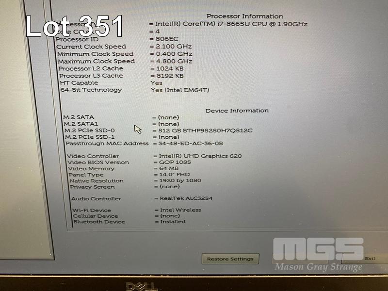 LAPTOP, DELL LATITUDE 7400, CORE i7 8665U (8TH GEN) @ 1.9GHz, 16GB DDR4 RAM, 512GB NVMe M.2 SSD, 14" WIDESCREEN (1920x1080), INTEL UHD GRAPHICS 620, Wi-Fi, BLUETOOTH, WINDOWS 11 PRO INSTALLED & POWER SUPPLY (NOTE: BATTERY NOT HOLDING CHARGE, RUBBER PAD MISSING ON BOTTOM OF LAPTOP, RUBBER PADS MISSING ON SCREEN HINGES) S/N:D7QLQ13