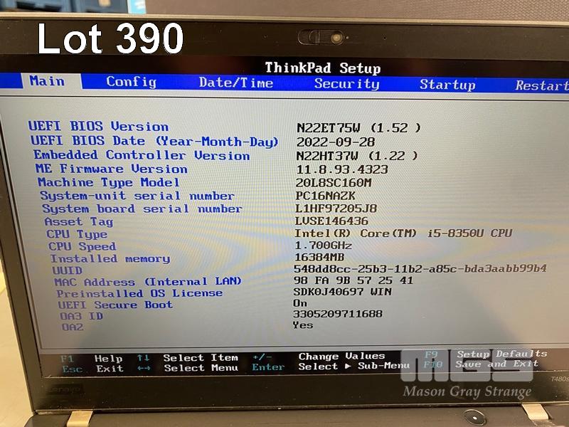 LAPTOP, LENOVO THINKPAD T480s, TYPE 20L8, CORE i5 8350U (8TH GEN) @ 1.7GHz, 16GB DDR4 RAM, 256GB NVMe M.2 SSD, 14" TOUCHSCREEN (1920x1080), INTEL HD VIDEO, Wi-Fi, BLUETOOTH, WINDOWS 11 PRO INSTALLED (NO USB-C POWER SUPPLY) (NOTE: MARKS ON SCREEN) S/N:PC16NAZK