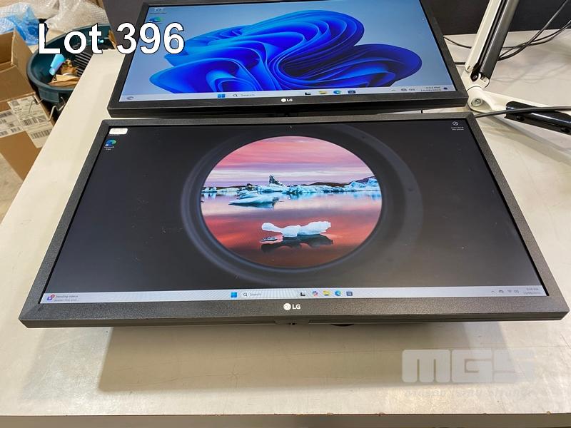 2 x MONITORS, LG 24" FHD IPS LED WIDESCREEN, 24MK430H, HDMI, VGA (WITH CABLES) WITH DUAL DESK MOUNT MONITOR ARM, WHITE (NOTE: SMALL SCRATCH ON 1 x MONITOR) S/N:112NTQDFE164, 112NTYTFD570