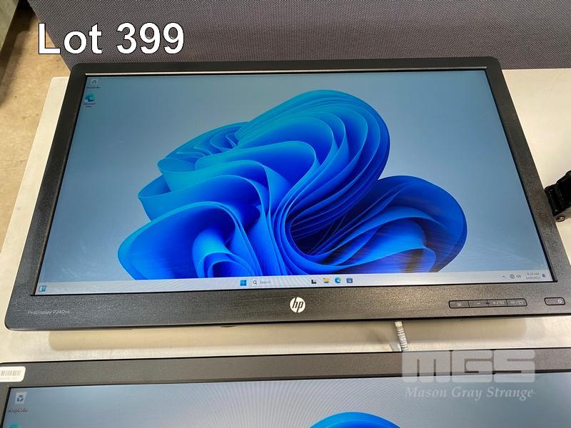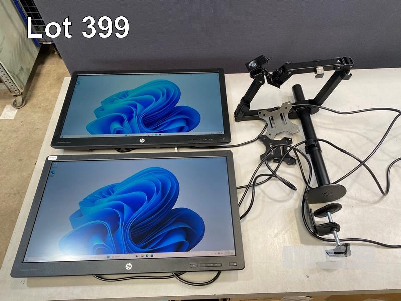 2 x MONITORS, HP PRODISPLAY P240va 23.8" LED-BL LCD WIDESCREEN, HDMI, DISPLAYPORT, VGA (WITH CABLES) (NO HDMI CABLE) WITH DUAL DESK MOUNT MONITOR ARM, BLACK