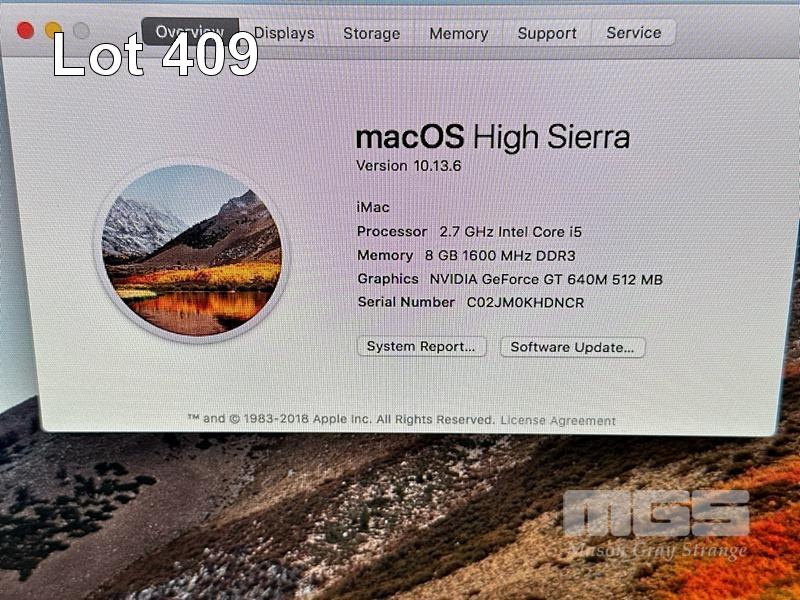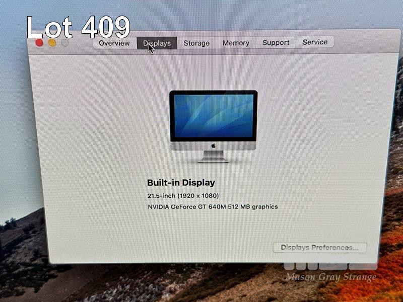APPLE iMAC (A1418), CORE i5 3330S (3RD GEN) @ 2.7GHz, 8GB DDR3 RAM, 1TB SATA HDD, BUILT-IN 21.5" DISPLAY (1920x1080), 512MB NVIDIA GEFORCE GT 640M VIDEO, Wi-Fi, BLUETOOTH, MAC OS 10.13 INSTALLED, KEYBOARD & MOUSE S/N:C02JM0KHDNCR