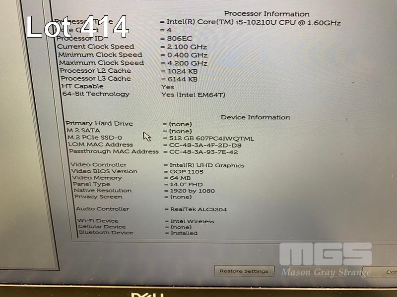 LAPTOP, DELL LATITUDE 5410, CORE i5 10210U (10TH GEN) @ 1.6GHz, 8GB DDR4 RAM, 512GB NVMe M.2 SSD, 14" WIDESCREEN (1920x1080), INTEL UHD GRAPHICS, Wi-Fi, BLUETOOTH, WINDOWS 11 HOME INSTALLED & POWER SUPPLY (NOTE: CASING PEELING, MINOR MARKS & SPOT ON SCREEN) S/N:7X8H063