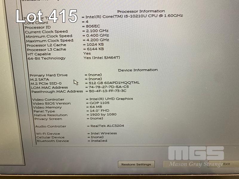 LAPTOP, DELL LATITUDE 5410, CORE i5 10210U (10TH GEN) @ 1.6GHz, 8GB DDR4 RAM, 512GB NVMe M.2 SSD, 14" WIDESCREEN (1920x1080), INTEL UHD GRAPHICS, Wi-Fi, BLUETOOTH, WINDOWS 11 HOME INSTALLED & POWER SUPPLY (NOTE: CASING PEELING, PART RUBBER SEAL LOOSE AROUND SCREEN) S/N:97YQL63