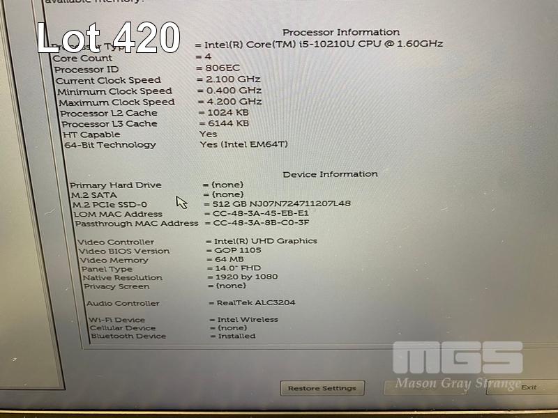 LAPTOP, DELL LATITUDE 5410, CORE i5 10210U (10TH GEN) @ 1.6GHz, 8GB DDR4 RAM, 512GB NVMe M.2 SSD, 14" WIDESCREEN (1920x1080), INTEL UHD GRAPHICS, Wi-Fi, BLUETOOTH, WINDOWS 11 HOME INSTALLED & POWER SUPPLY (NOTE: BATTERY NOT HOLDING CHARGE) S/N:2PP4Q73