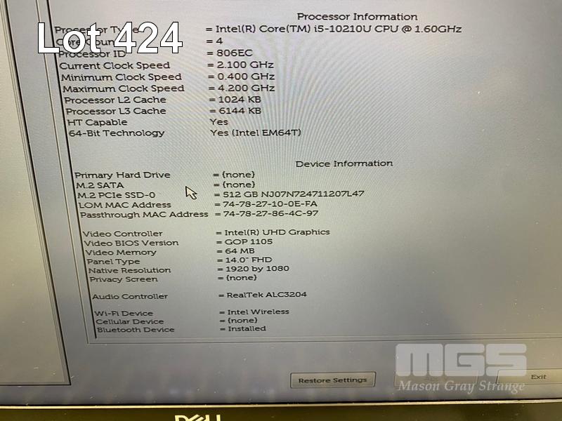 LAPTOP, DELL LATITUDE 5410, CORE i5 10210U (10TH GEN) @ 1.6GHz, 8GB DDR4 RAM, 512GB NVMe M.2 SSD, 14" WIDESCREEN (1920x1080), INTEL UHD GRAPHICS, Wi-Fi, BLUETOOTH, WINDOWS 11 HOME INSTALLED & POWER SUPPLY (NOTE: CASING PEELING, BATTERY NOT HOLDING CHARGE) S/N:HD2PQ73