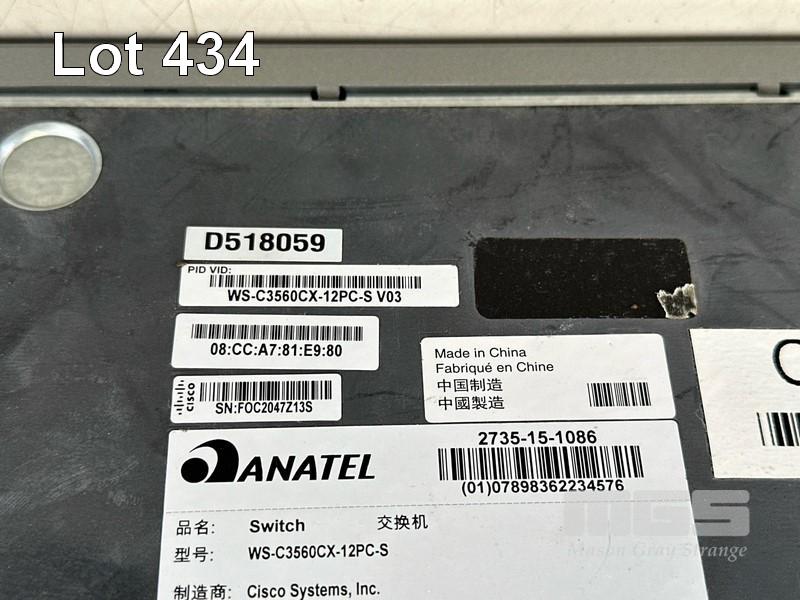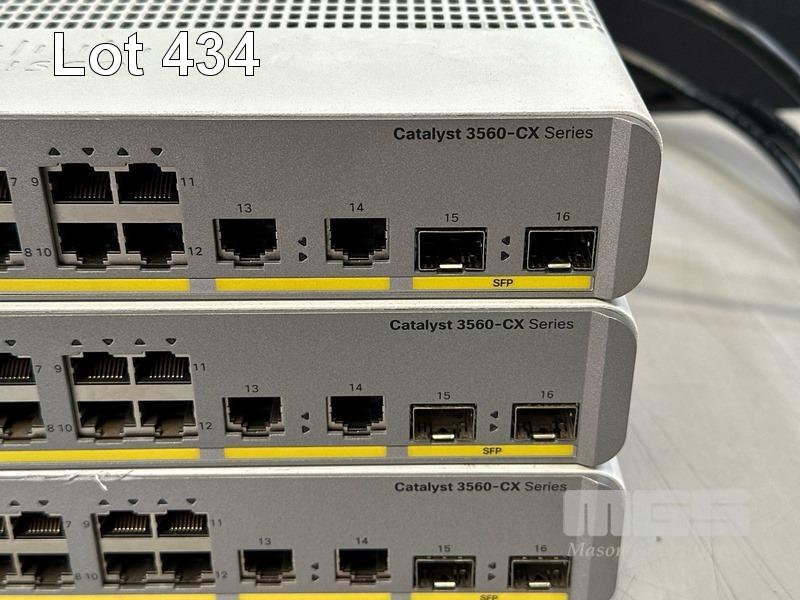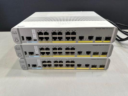 3 x CISCO CATALYST 3560-CX SERIES SWITCHES, WS-C3560CX-12PC-S V03 WITH IEC-C14 TO C15 NOTCH POWER CABLES S/N:FOC2047Z142, FOC2047Z13S, FOC2308T646
