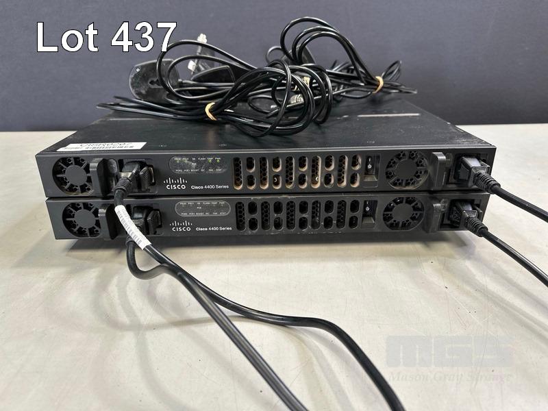 2 x CISCO 4400 SERIES INTEGRATED SERVICES ROUTERS, ISR4431/K9 V01, 4G-LTE-GA NETWORK INTERFACE MODULE EACH WITH 2 x 4G-LTE-ANTM-D ANTENNAS, 2 x PSU S/N:FGL1952112X, FGL1952117Y