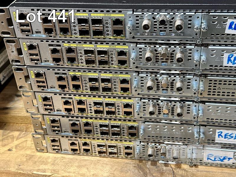 6 x CISCO 4400 SERIES INTEGRATED SERVICES ROUTERS, ISR4431/K9, 2 x PSU S/N:FJC2342A0LZ, FGL1952113K, FGL19521135, FGL1952112G, FJC2252A08C, FGL19521139