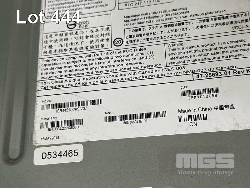 CISCO 4400 SERIES INTEGRATED SERVICES ROUTER, 2U, ISR4451-X/K9 V07, 2 x PSU S/N:FGL2220808U