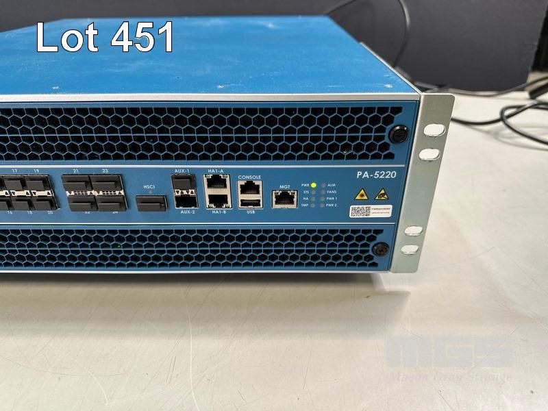 PALO ALTO NETWORKS PA-5220 ENTERPRISE FIREWALL, 3U, 2 x 240GB SSD, 2 x 2TB SATA HDD S/N:013201019196