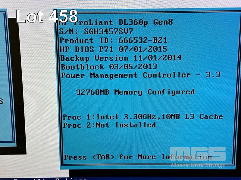 RACKMOUNT SERVER, HP PROLIANT DL360p Gen8, 1U, XEON E5-2643 @ 3.3GHz, 32GB ECC DDR3 RAM, 4 x 300GB SAS HDD, 6 x 146GB SAS HDD, 2 x 460W PSU (NO CABLES) S/N:SGH3457SV7