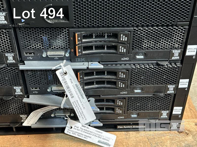 IBM FLEX SYSTEM ENTERPRISE CHASSIS, TYPE 8721 WITH 7 x BLADE SERVERS INC. - 7 x IBM x240, TYPE 8737, 2 x XEON E5-2650 v2 @ 2.6GHz, 256GB ECC DDR3 RAM (16x16GB), 2 x 120GB SSD WITH RAILS S/N:06BEKZA, 06BRFLB, 06BRFLC, 06BRFLL, 06BRFLG, 06BRFLD, 06BRFLK, 06BRFLF