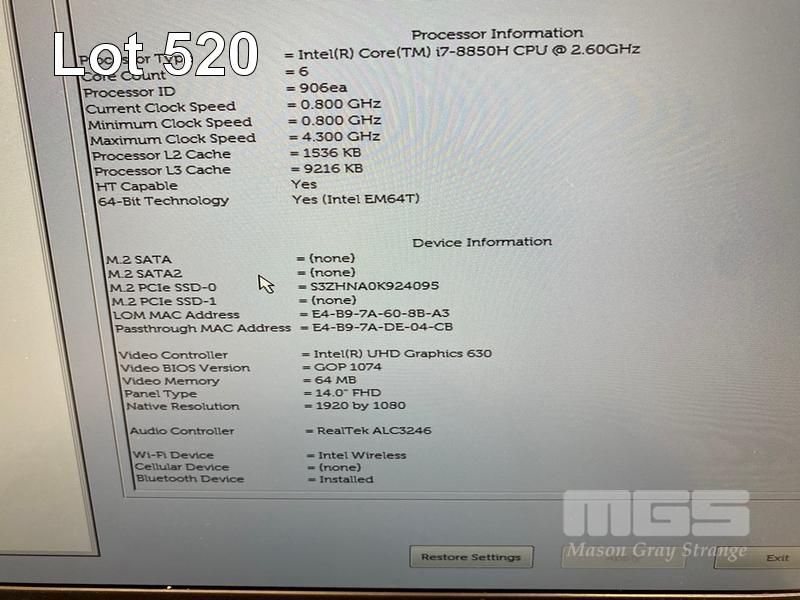 LAPTOP, DELL LATITUDE 5491, CORE i7 8850H (8TH GEN) @ 2.6GHz, 16GB DDR4 RAM, 512GB NVMe M.2 SSD, 14" WIDESCREEN (1920x1080), 2GB NVIDIA GEFORCE MX130 VIDEO, INTEL UHD GRAPHICS 630, Wi-Fi, BLUETOOTH, WINDOWS 11 PRO INSTALLED & POWER SUPPLY S/N:B4KY4S2