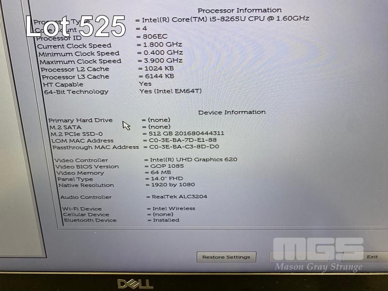 LAPTOP, DELL LATITUDE 5400, CORE i5 8265U (8TH GEN) @ 1.6GHz, 8GB DDR4 RAM, 512GB NVMe M.2 SSD, 14" WIDESCREEN (1920x1080), INTEL UHD GRAPHICS 620, Wi-Fi, BLUETOOTH, WINDOWS 11 HOME INSTALLED & POWER SUPPLY (NOTE: MARKS & SPOT ON SCREEN) S/N:DD8CW33