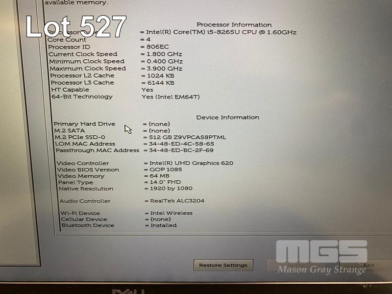LAPTOP, DELL LATITUDE 5400, CORE i5 8265U (8TH GEN) @ 1.6GHz, 8GB DDR4 RAM, 512GB NVMe M.2 SSD, 14" WIDESCREEN (1920x1080), INTEL UHD GRAPHICS 620, Wi-Fi, BLUETOOTH, WINDOWS 11 HOME INSTALLED & POWER SUPPLY (NOTE: MARKS ON SCREEN) S/N:68K6L13