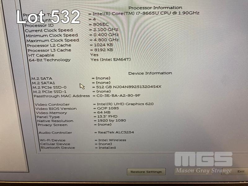 LAPTOP, DELL LATITUDE 7300, CORE i7 8665U (8TH GEN) @ 1.9GHz, 16GB DDR4 RAM, 512GB NVMe M.2 SSD, 13.3" WIDESCREEN (1920x1080), INTEL UHD GRAPHICS 620, Wi-Fi, BLUETOOTH, WINDOWS 11 HOME INSTALLED & POWER SUPPLY (NOTE: RUBBER PAD PART MISSING ON BOTTOM OF LAPTOP, BATTERY NOT HOLDING CHARGE) S/N:8RYBY33