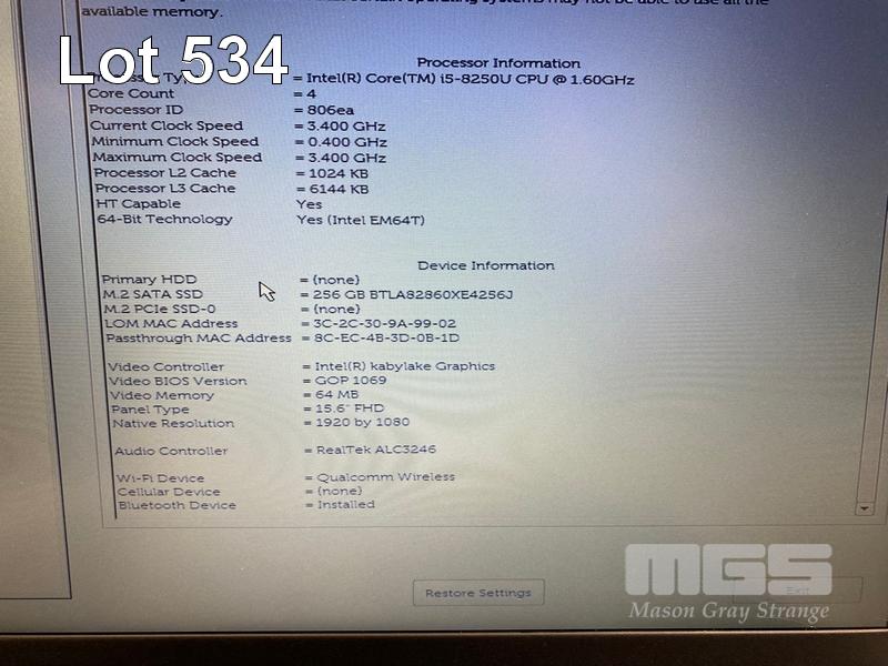 LAPTOP, DELL LATITUDE 3590, CORE i5 8250U (8TH GEN) @ 1.6GHz, 8GB DDR4 RAM, 256GB M.2 SSD, 15.6" WIDESCREEN (1920x1080), INTEL HD VIDEO, Wi-Fi, BLUETOOTH, WINDOWS 11 HOME INSTALLED & POWER SUPPLY S/N:DZ64YR2