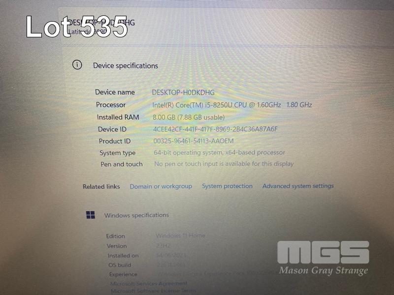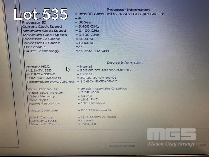 LAPTOP, DELL LATITUDE 3590, CORE i5 8250U (8TH GEN) @ 1.6GHz, 8GB DDR4 RAM, 256GB M.2 SSD, 15.6" WIDESCREEN (1920x1080), INTEL HD VIDEO, Wi-Fi, BLUETOOTH, WINDOWS 11 HOME INSTALLED & POWER SUPPLY (NOTE: VERTICAL LINE ON SCREEN) S/N:3274YR2