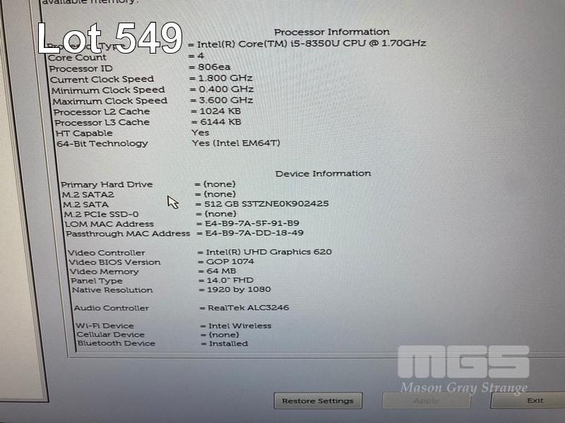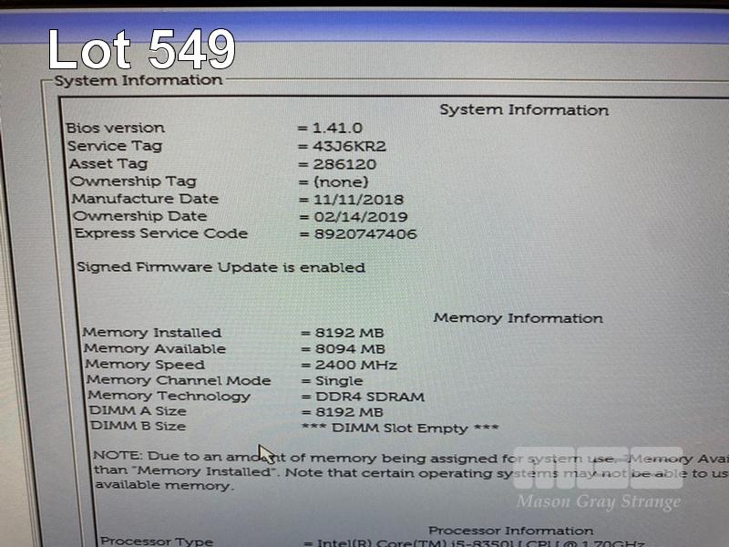 LAPTOP, DELL LATITUDE 5490, CORE i5 8350U (8TH GEN) @ 1.7GHz, 8GB DDR4 RAM, 512GB M.2 SSD, 14" WIDESCREEN (1920x1080), INTEL UHD GRAPHICS 620, Wi-Fi, BLUETOOTH, WINDOWS 11 HOME INSTALLED & POWER SUPPLY S/N:43J6KR2