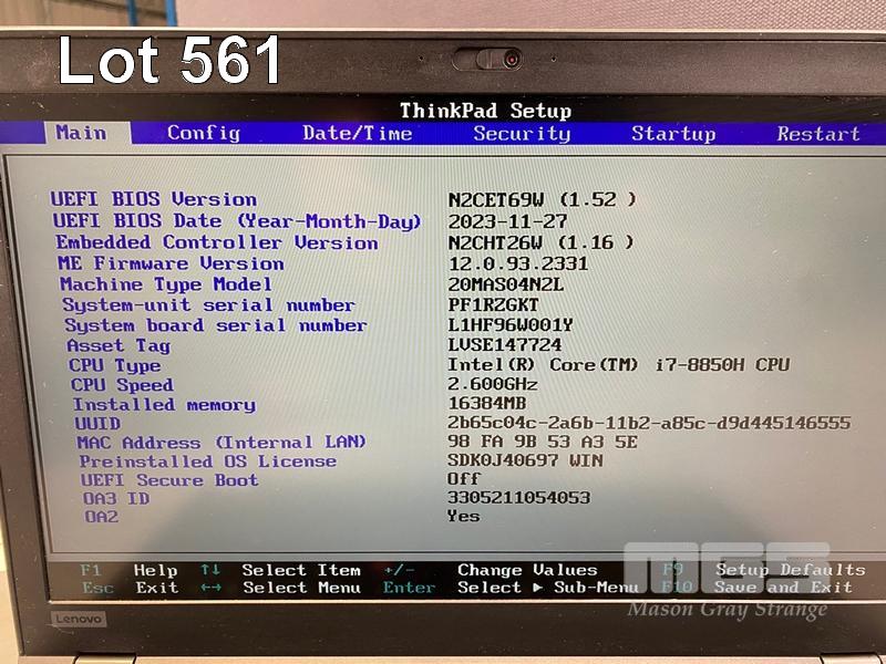 LAPTOP, LENOVO THINKPAD P52 MOBILE WORKSTATION, TYPE 20MA, CORE i7 8850H (8TH GEN) @ 2.6GHz, 16GB DDR4 RAM, 512GB NVMe M.2 SSD, 15.6" WIDESCREEN (1920x1080), 4GB NVIDIA QUADRO P2000 VIDEO, Wi-Fi, BLUETOOTH, WINDOWS 11 PRO INSTALLED (NO POWER SUPPLY) S/N:PF1RZGKT