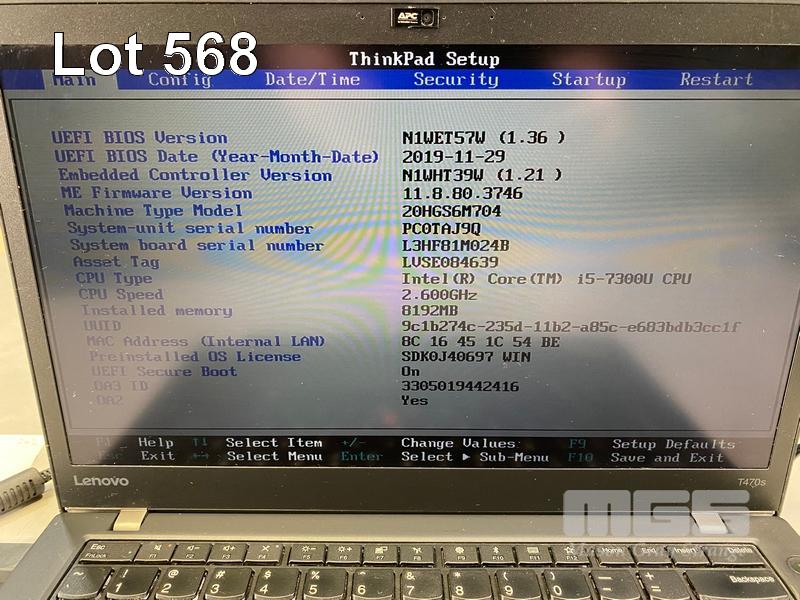 LAPTOP, LENOVO THINKPAD T470s, TYPE 20HG, CORE i5 7300U (7TH GEN) @ 2.6GHz, 8GB DDR4 RAM, 256GB NVMe M.2 SSD, 14" TOUCHSCREEN (1920x1080), INTEL HD VIDEO, Wi-Fi, BLUETOOTH, WINDOWS 10 PRO INSTALLED & POWER SUPPLY S/N:PC0TAJ9Q