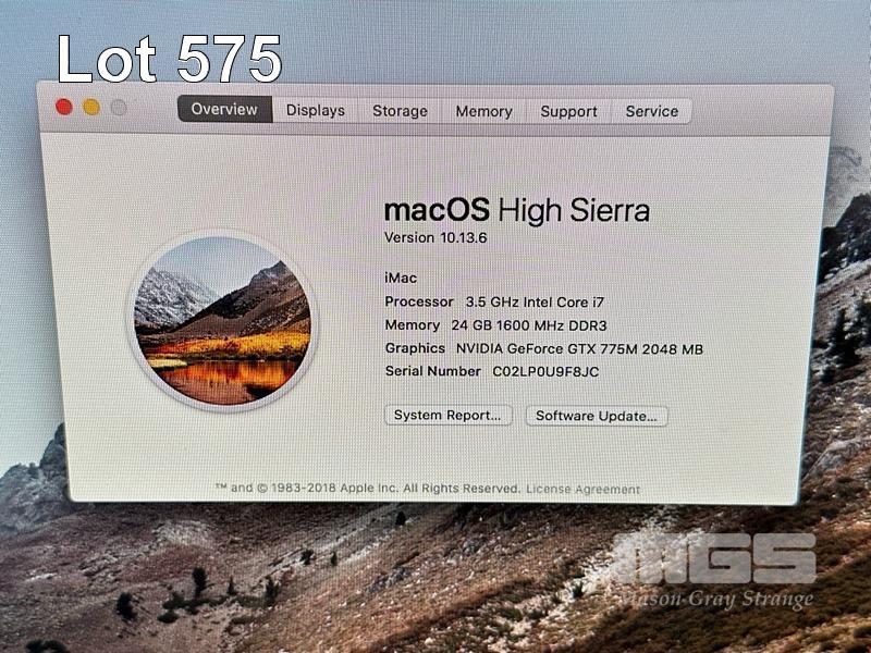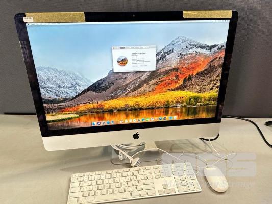 APPLE iMAC (A1419), CORE i7 4771 (4TH GEN) @ 3.5GHz, 24GB DDR3 RAM, 128GB SSD, BUILT-IN 27" DISPLAY (2560x1440), 2GB NVIDIA GEFORCE GT 775M VIDEO, Wi-Fi, BLUETOOTH, MAC OS 10.13 INSTALLED, KEYBOARD & MOUSE (NOTE: DAMAGED) S/N:C02LP0U9F8JC