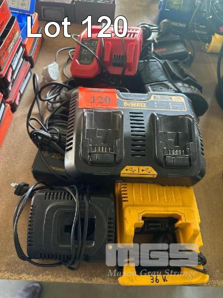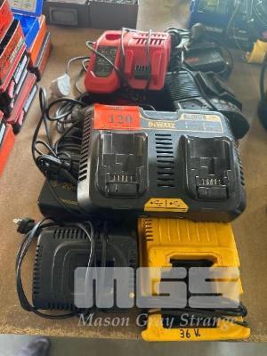 7 x ASSORTED CORDLESS TOOL CHARGERS, AEG, DEWALT, MILWAUKEE, ETC