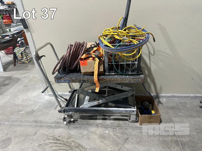 PARAMOUNT SCISSOR LIFT TROLLEY + AIR HOSE, RATCHET STRAPS, ETC