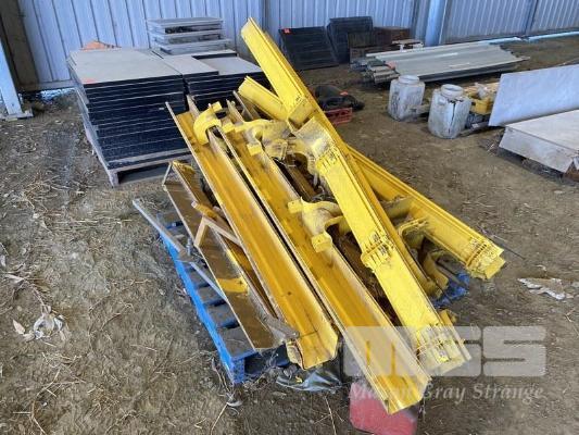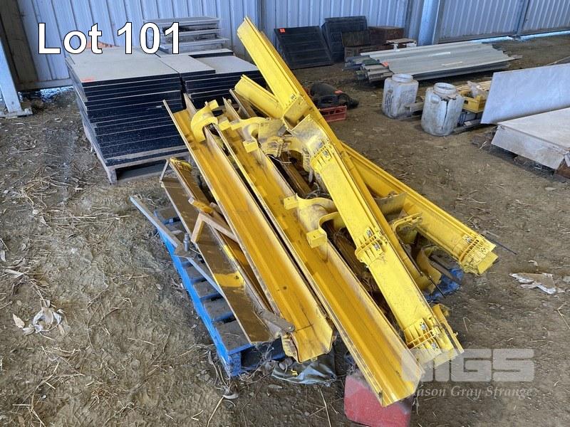 1 x PALLET LAMINATE TIMBER SHELVING & 1 x PALLET YELLOW PLASTIC CABLE TRAYS