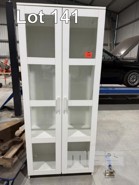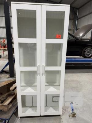 WHITE LAMINATE TIMBER & GLASS 2 DOOR CABINET