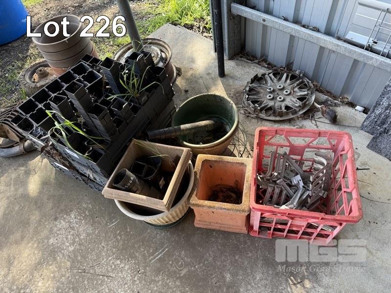 ASSORTED PLANTER TUBS, BASKETBALL RING, ETC