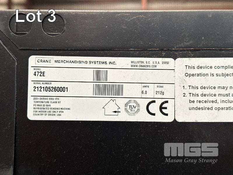 CRANE COMBINATION SNACK & BEVERAGE VENDING MACHINE, MOD: 472E REFRIGERATED, 44 TOTAL SELECTIONS, ACCEPTS COINS, NOTES & PAYWAVE PAYMENTS 9″ TOUCHSCREEN USER PANEL, WITH ON SCREEN ADVERTISING VIDEOS AND CART PURCHASING, LED PIL LIGHTING ON THE USER PANEL MULTI-PRODUCT PURCHASES MADE IN USA, 240V 10 AMP WITH KEY RRP: $11,000 USD