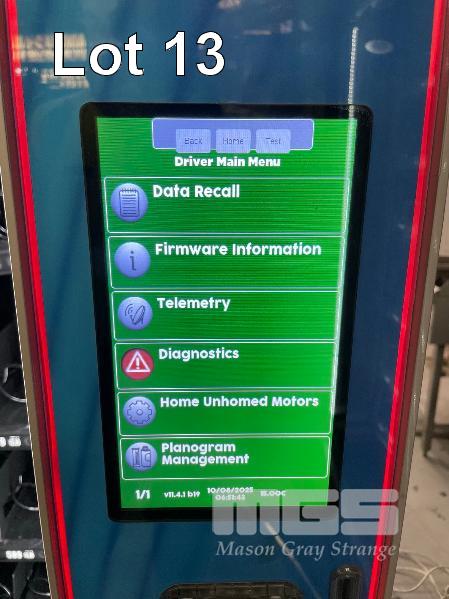 CRANE COMBINATION SNACK & BEVERAGE VENDING MACHINE, MOD: 472E REFRIGERATED, 44 TOTAL SELECTIONS, ACCEPTS COINS, NOTES & PAYWAVE PAYMENTS 9″ TOUCHSCREEN USER PANEL, WITH ON SCREEN ADVERTISING VIDEOS AND CART PURCHASING, LED PIL LIGHTING ON THE USER PANEL MULTI-PRODUCT PURCHASES MADE IN USA, 240V 10 AMP WITH KEY RRP: $11,000 USD NOTE: PLASTIC SHELVES WARPED, NEED REPLACING