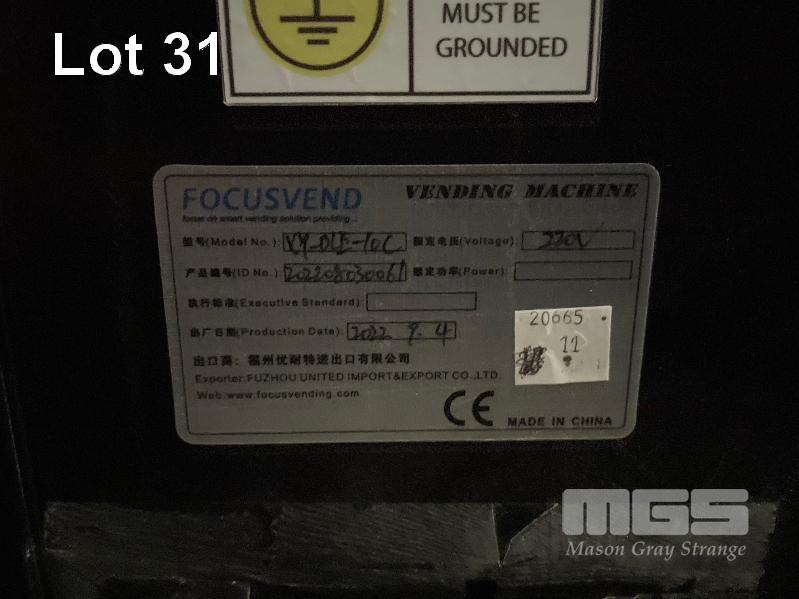 FOCUS VEND COMBINATION SNACK & BEVERAGE VENDING MACHINE, MOD: XY-DLE-10C, DOM: 2022 REFRIGERATED, LED DISPLAY, ACCEPTS COINS, CASH & PAYWAVE PAYMENTS 240V 10 AMP