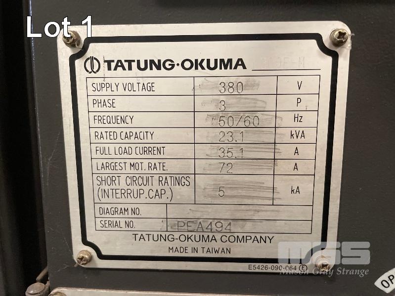 OKUMA CNC LATHE, TYPE: GENOS L300E-M, SERIAL: PEA494, DOM: 07/2013, GROSS WEIGHT: 6,600kg, CONTROL PANEL MOD: OSP-P300L-R, 415V WITH WASTE CONVEYOR & FULL SET OPERATION BOOKS