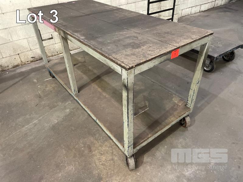 MOBILE WORK BENCH, 1800 x 800 x 930mm 2 TIER, CASTOR WHEELS, PLYWOOD TOP