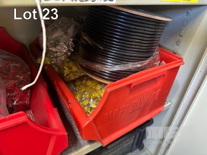 CONTENTS OF CUPBOARD, LARGE QTY ASSORTED WIRE CAPACITORS & RESISTORS ETC.
