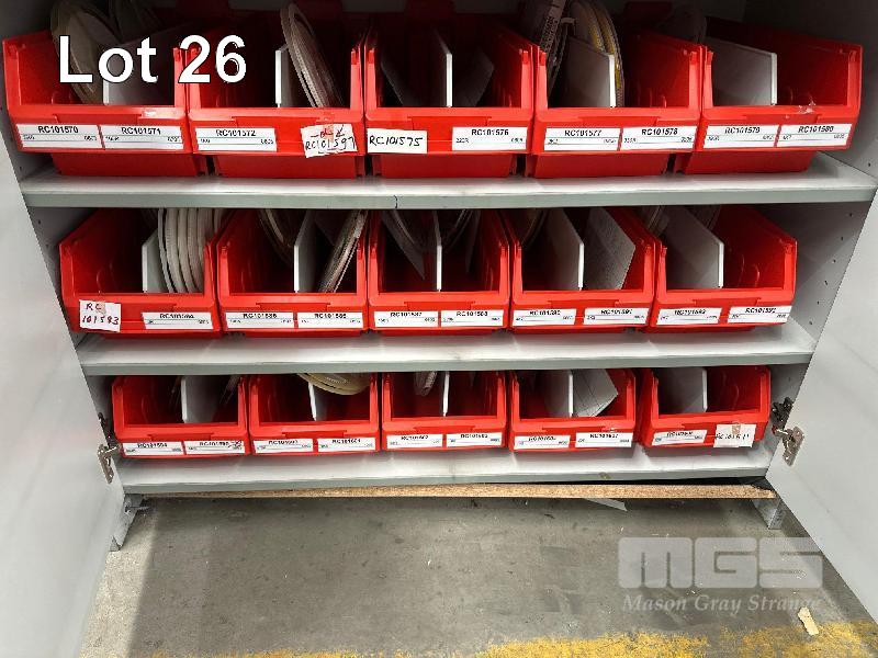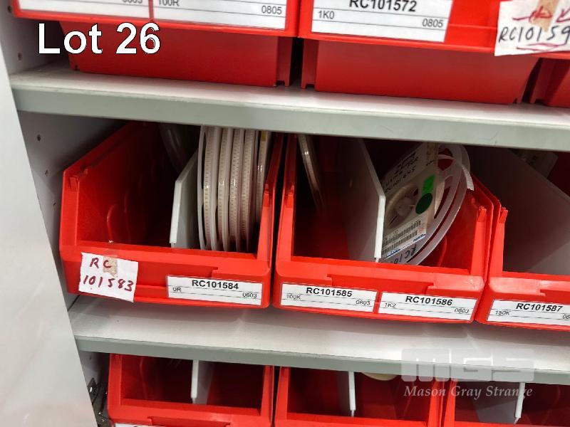 CONTENTS OF CUPBOARD, 20 x MAXI BINS, ASSORTED RESISTORS, CAPACITORS, DIODES, ETC.