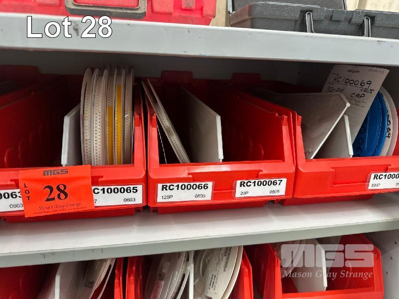 CONTENTS OF CUPBOARD, 20 x MAXI BINS, ASSORTED RESISTORS, CAPACITORS, DIODES, ETC.