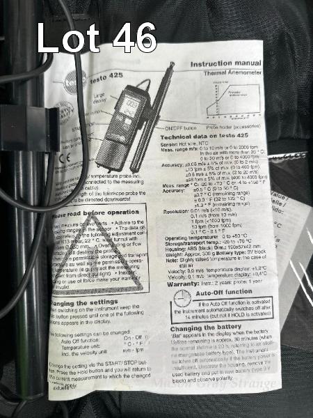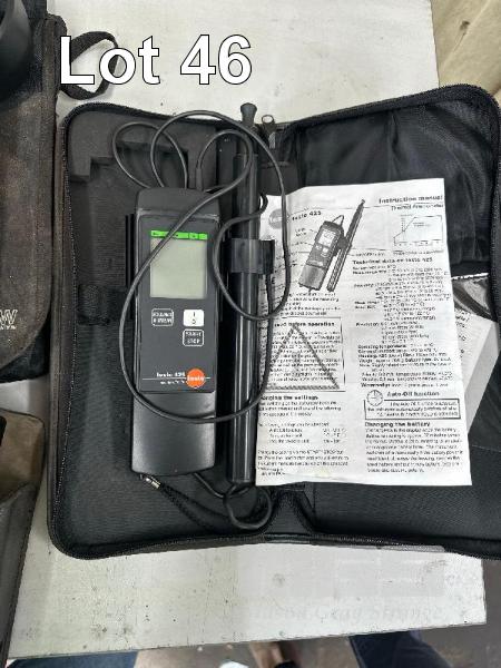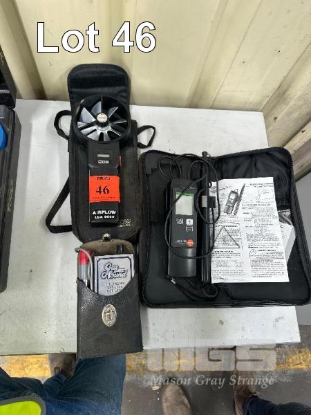 AIR FLOW METER, MOD: LCA6000, GAS ROUND ELECTRONIC GAS LEAK DETECTOR, TESTO ANEMOMETER, MOD: TESTO425
