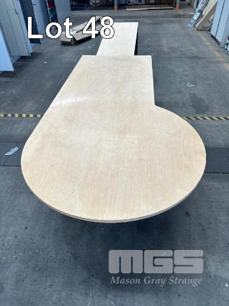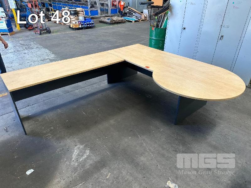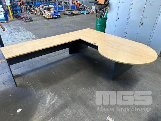 2 x KEY HOLE SHAPE DESKS WITH RETURN, TIMBER LAMINATE, 2400 x 2700mm
