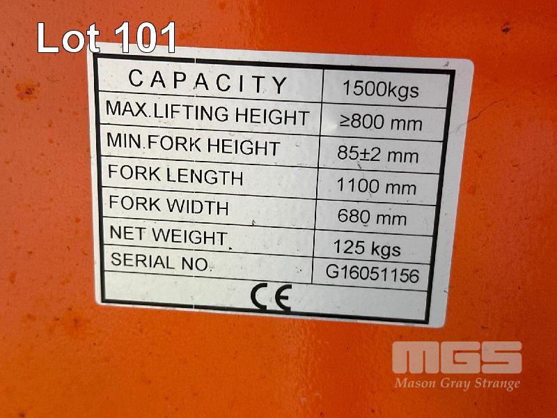 JIALIFT HIGH LIFT PALLET JACK, 1500kg CAP, MAX 800mm (H)