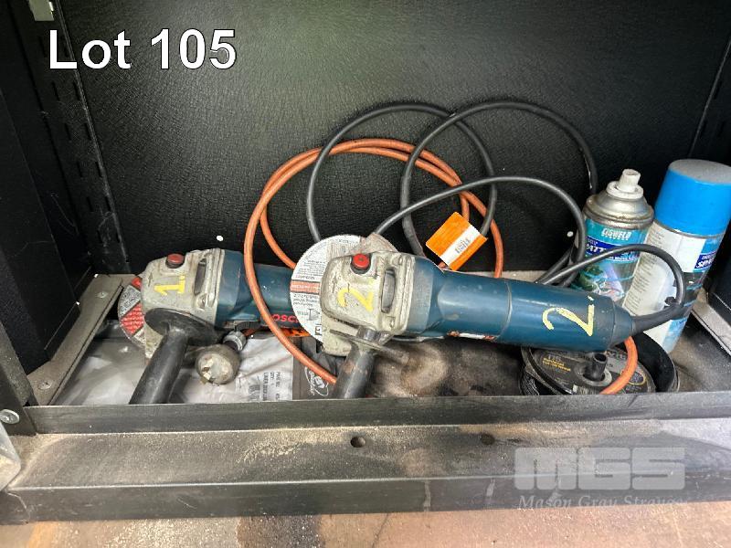 TOOL CABINET WITH 2 x BOSCH ANGLE GRINDERS, ASSORTED BLADES & CUTTING DISCS