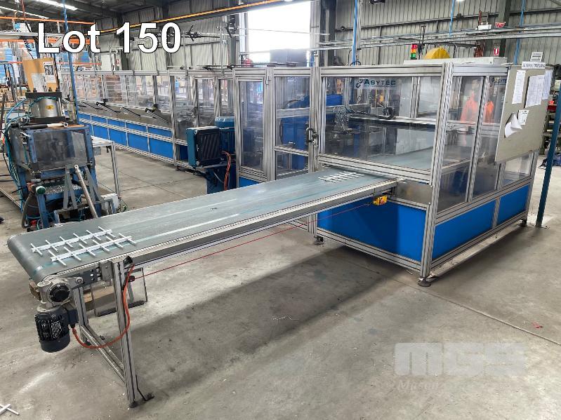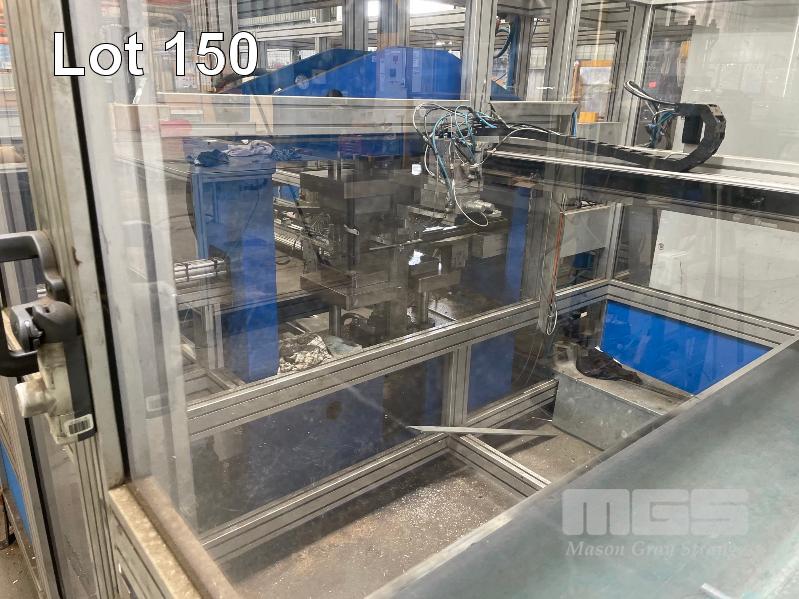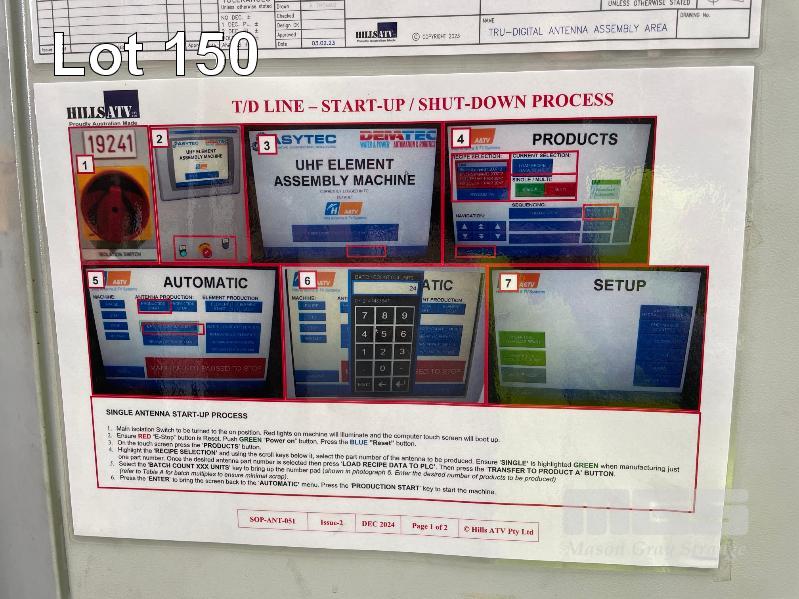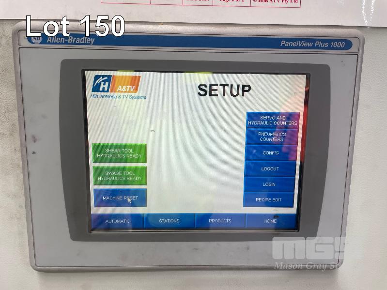 CNC TRU-DIGITAL ANTENNA AUTO ASSEMBLY LINE COMPRISING CUTTING STATION, FOLDING STATION, HOLE PUNCH STATION, PRESS & DIE STATION, OUTFEED CONVEYOR, ALLEN-BRADLEY CONTROL PANEL, MOD: PANEL VIEW PLUS 1000, 6m MATERIAL CAP, COMPLETE SAFETY ENCLOSURE & LOCK OUT KEYS